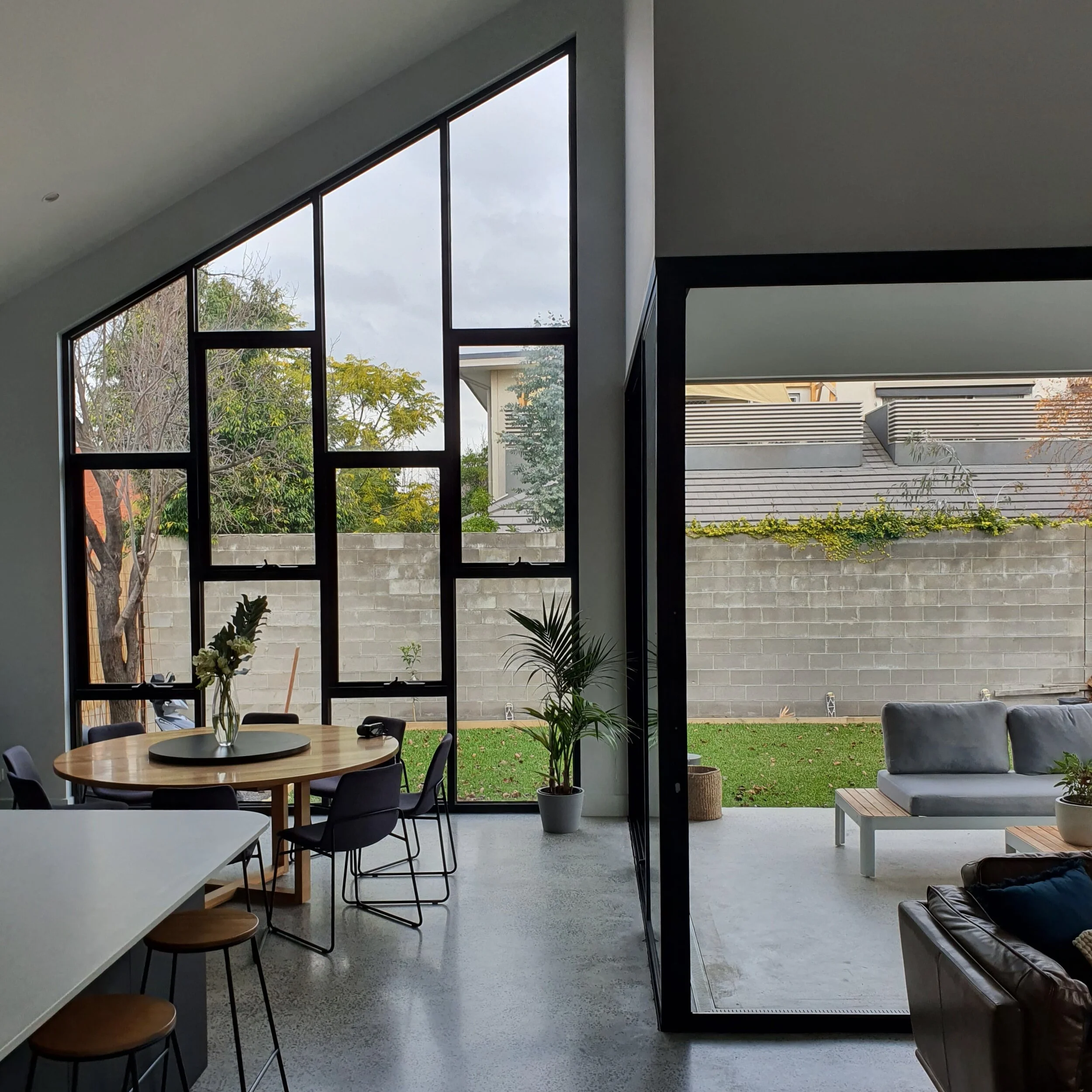 We were given the opportunity to re-energize this modest residence in Thornbury. Re-using the current, front end of the home and designing a large extension to the rear. Providing large scale windows and doors to the rear, allows for dramatic lighting during certain times of the day coupled with the high raked ceilings and the ‘touch of the old’ in the internal painted brick wall.